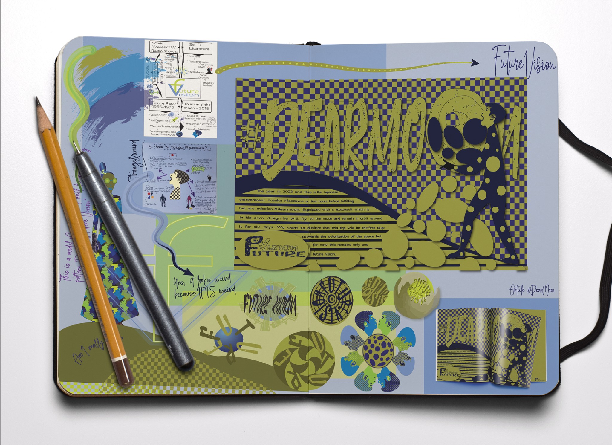 My specific inspiration for this design comes from an information that shook the world about three years ago, when on September 17th, 2018 it was announced that Yusaku Maezawa would be the first commercial passenger that will try to fly around the moon.As a part of an art project he has created and called #dearMoon,Mr Maezawa plans to take with him six to eight artists who will then create their impressions of this journey through their art.